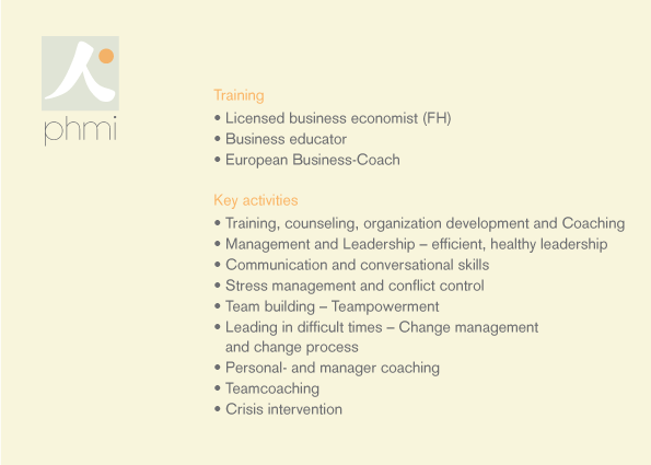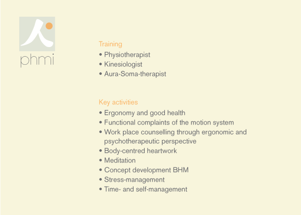 proprietor, consultant for health concepts, alternative practitioner of physiotherapy, awareness coach